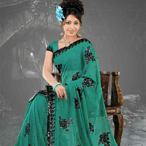 Sari Fabric is the traditional dress of women in India. It is an outer garment worn by a woman consisting of a single length of cotton or silk, 5 to 7 yards long, most often with one end wrapped around the waist to form a skirt, the other draped over the shoulder, or head. It is worn over a short, tight top (called Choli or Blouse) with short arms and a thin underskirt of plain cotton (Petticoat).
